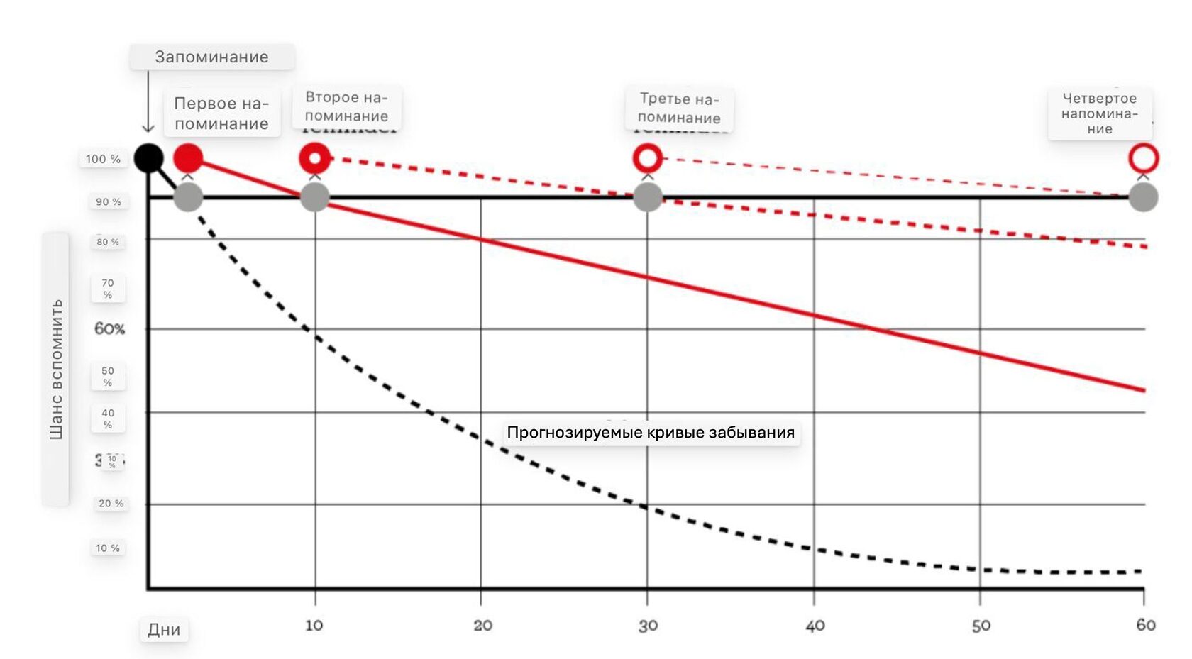 Есть исследование, в котором утверждается, что через час после урока ученики забывают 60% того, о чём им на этом уроке рассказывали. А через месяц они забывают уже 80% информации